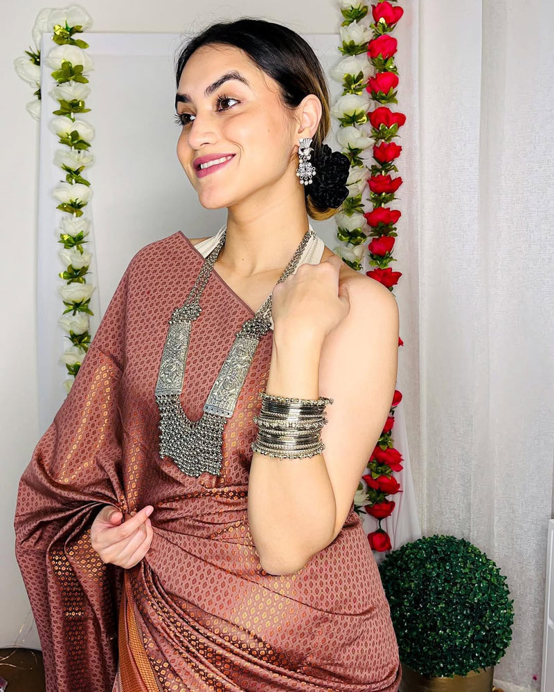 Brown Soft Viscose Khadi Silk Partywear Saree with Satin Border & Jacquard Design