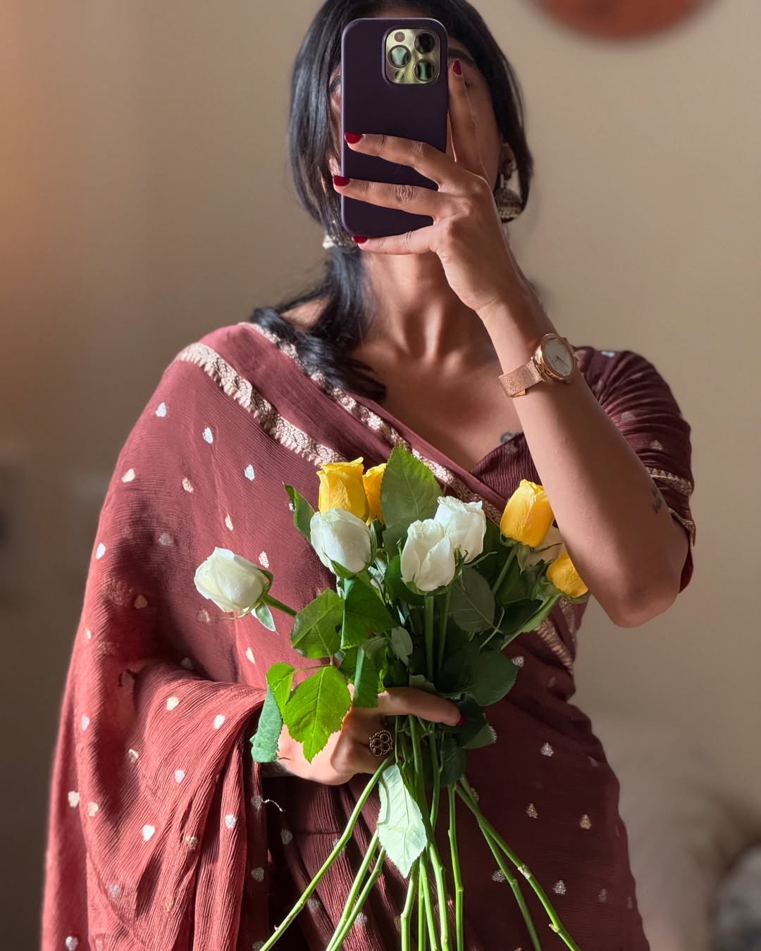 Back in stock! This pure Chinon viscose saree with a matching blouse brings unmatched elegance and comfort. A premium new arrival, perfect for weddings, festive occasions, and luxurious partywear looks.