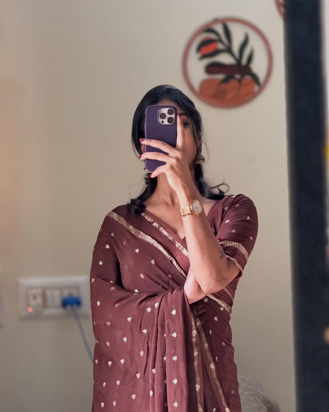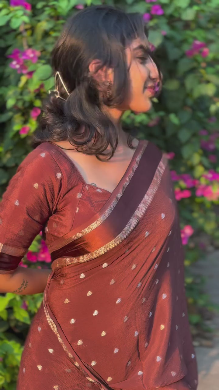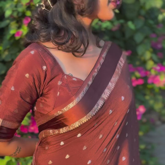 Brown Violet Pure Chinon Viscose Saree with Matching Blouse – Restocked Partywear Collection