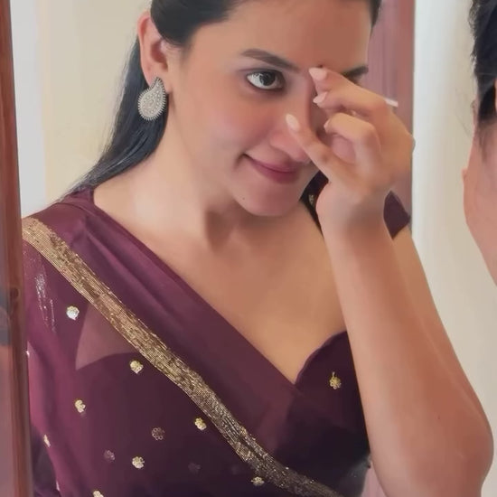 Brown Viscose Georgette Sequins Saree with Satin Border & Contrast Blouse – Partywear Collection