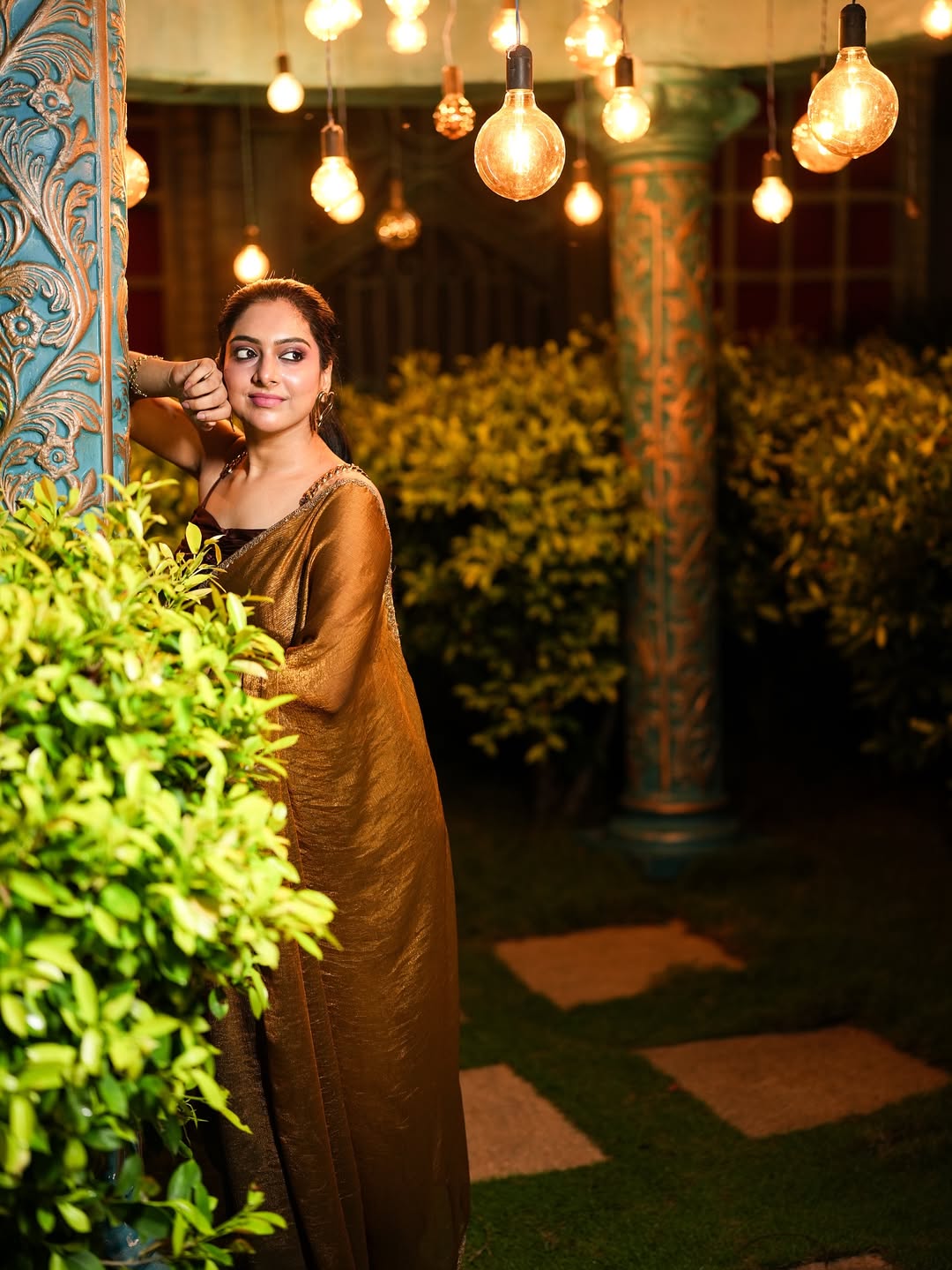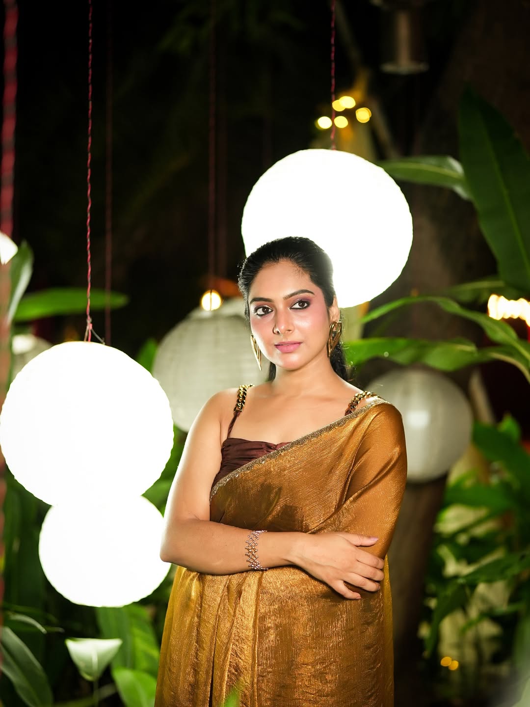 Unveil timeless glamour with this Special Simiri Golden Lovers Limited Edition saree, crafted in rich chiffon Fendy two-tone fabric. Adorned with intricate beads handwork and a luxurious border, it comes with a running blouse — perfect for weddings, festive nights, and exclusive partywear looks.