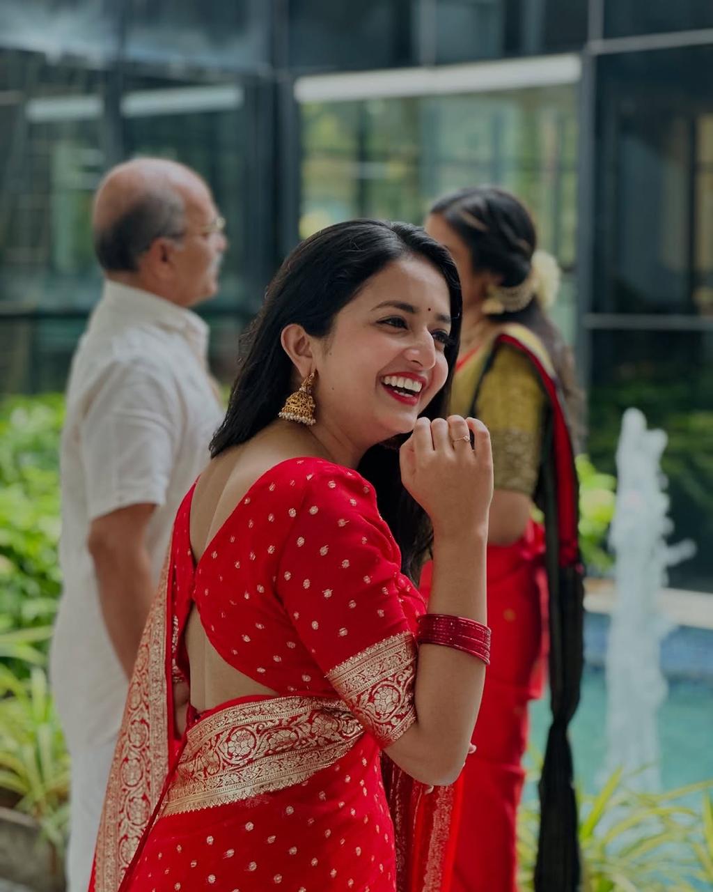 Red Viscose Georgette Saree with Running Blouse – New Partywear Collection