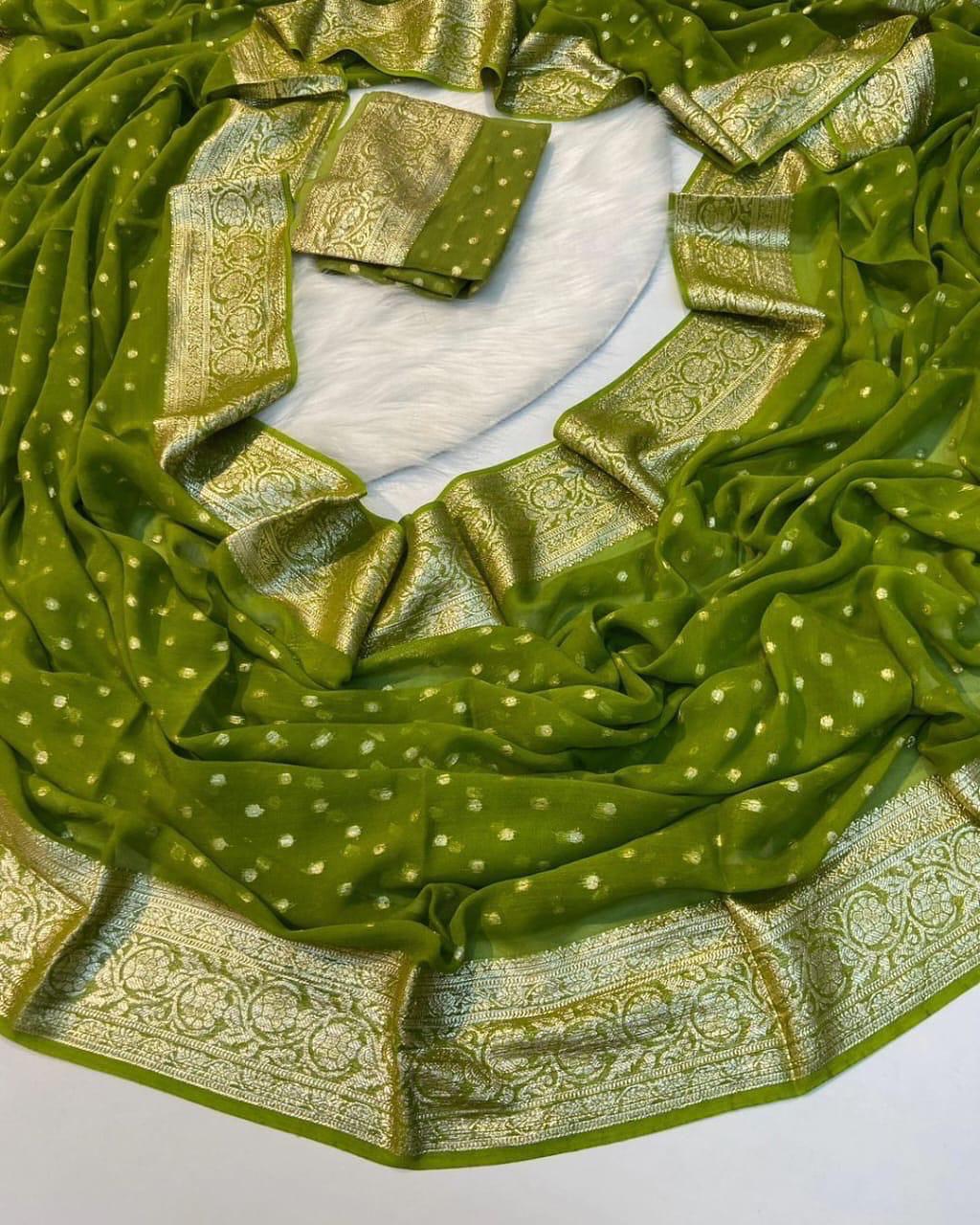 Stunzilla Green Viscose Georgette Saree with Running Blouse – New Partywear Collection