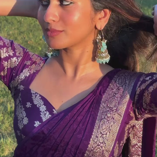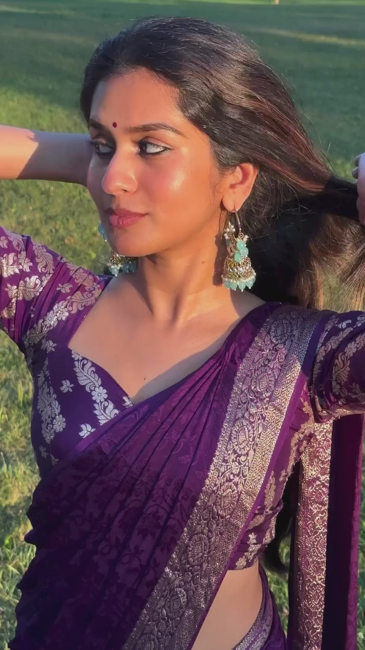 Violet Viscose Chinon Saree with Dola Banarasi Silk Blouse – Festive & Wedding Wear