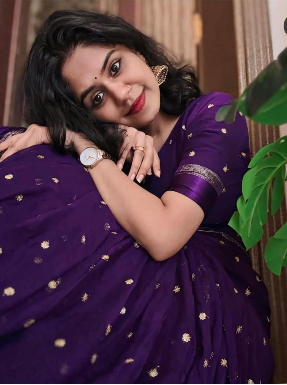 Violet Viscose Georgette Sequins Saree with Satin Border & Contrast Blouse – Partywear Collection