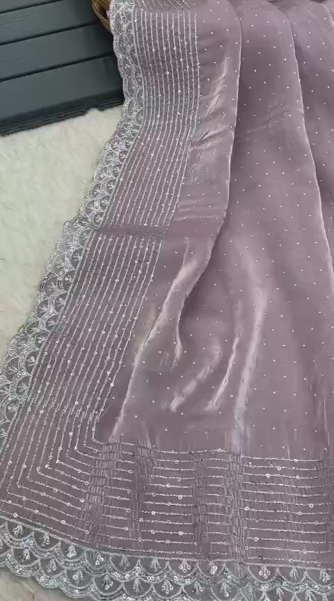 Presenting the most beautiful sequin saree in luxurious Zimi Chu fabric, featuring exquisite sequin and stone work across 5.5 meters of elegance. Paired with a matching embroidered Zimi Chu blouse, this stunning new arrival is perfect for weddings, festive events, and glamorous partywear looks.